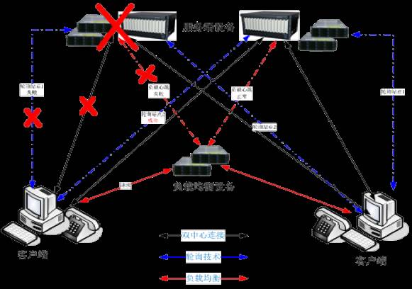 因为呼叫中心他有一个语音线路,一个话机,我们设计的双中心连接的方法,就是我的话机同时接入到两个中心里面去,同时有效,按需切换。另外一个就是轮询技术,访问应用服务器,主系统有问题可以自动访问第二个。最后一个就是负载均衡,这个就不多说了,WEB应用访问。这三个技术其实我们在整个客户端都采用了。