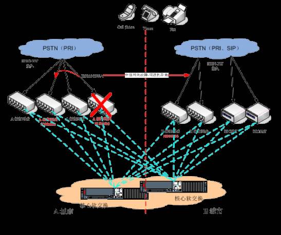 总体而言,公网接入层除了SIP中继外,其他在我们企业端的设备部署也比较简单,就是两地部署,所有的线路均衡分配到不同的设备上,预防单设备故障。并且都上联到我们南通上海核心交换,由核心系统进行异地调度。